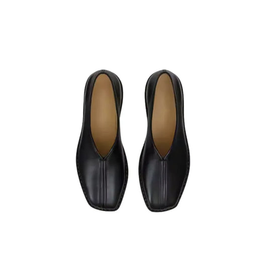Ballerines Femme en Cuir Véritable Noir - Bout Rond - Semelle Antidérapante - Sans Lacets