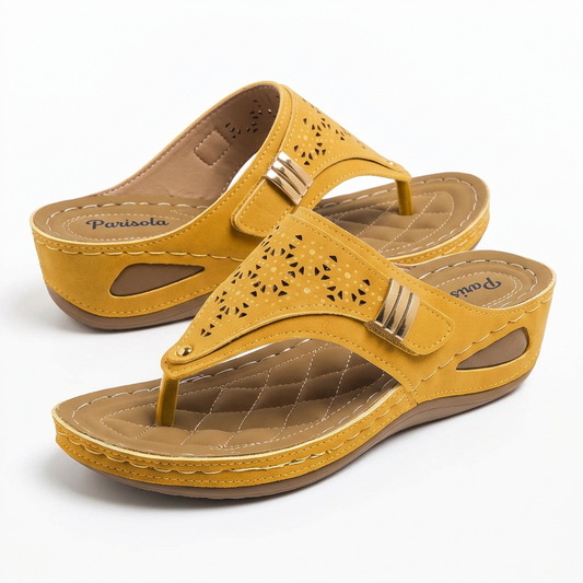 Sandales Compensées Femme Tige Ajourée Jaune Moutarde