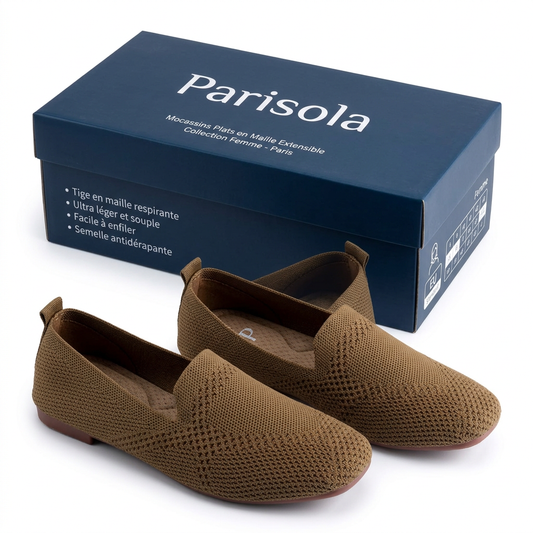 Mocassins Femme en Maille Extensible - Bout Rond - Semelle Caoutchouc Antidérapant