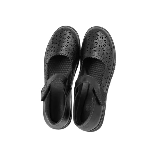 Chaussures Plates Femme Ajourées avec Bride à Scratch - PU Souple - Motifs Floraux