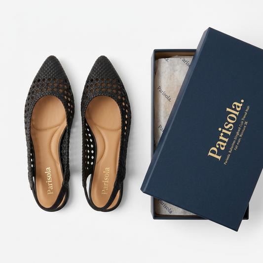 Ballerines Slingback Femme en Cuir Tressé Noir - Bride Arrière - Bout Rond
