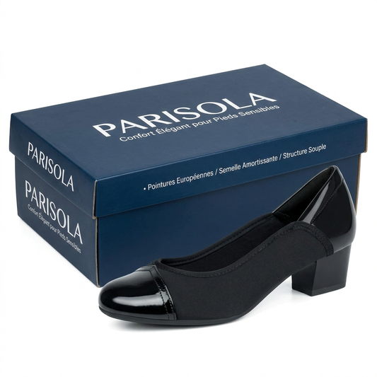 Chaussures Femme en Cuir Noir à Talon Carré - Bout Rond - Fermeture Classique